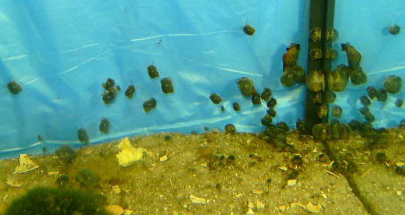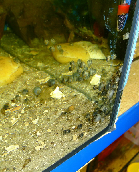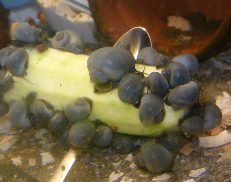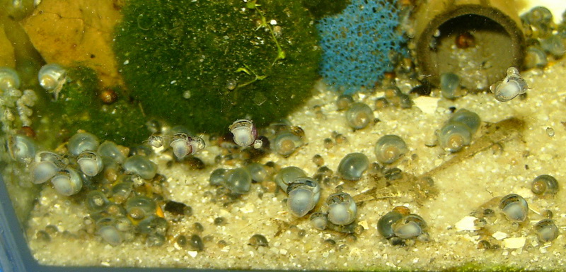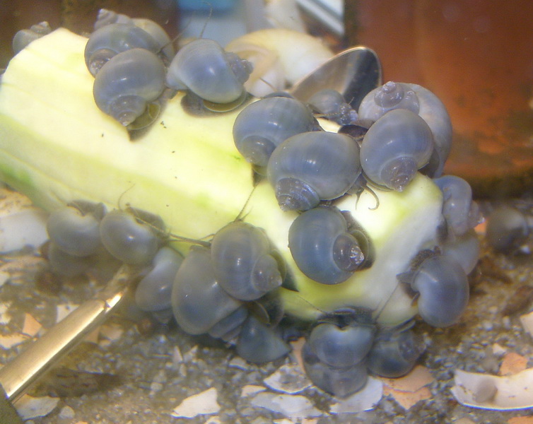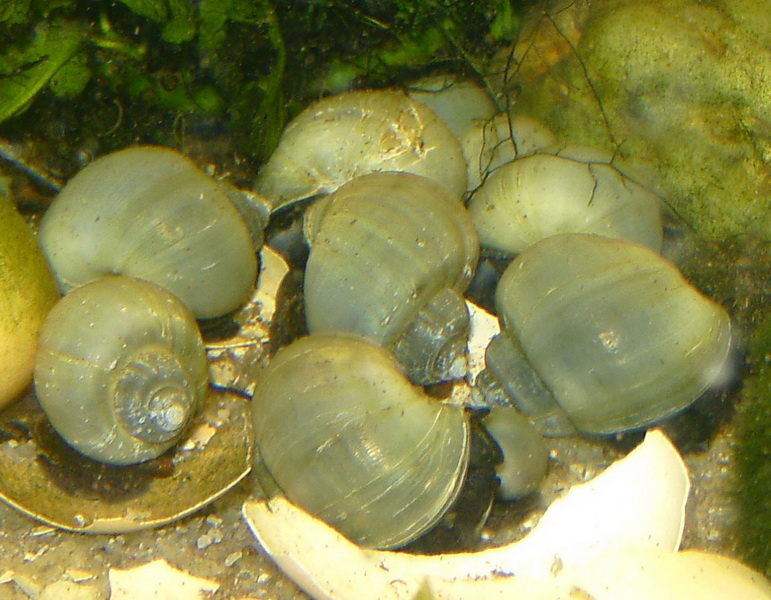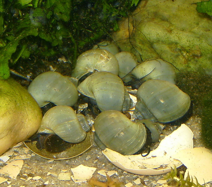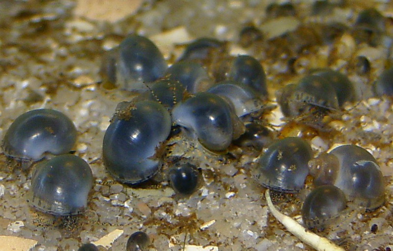 da wären dann süßwassertaugliche Rennschnecken besser geeignet, wenn man mit den Gelegen leben kann.