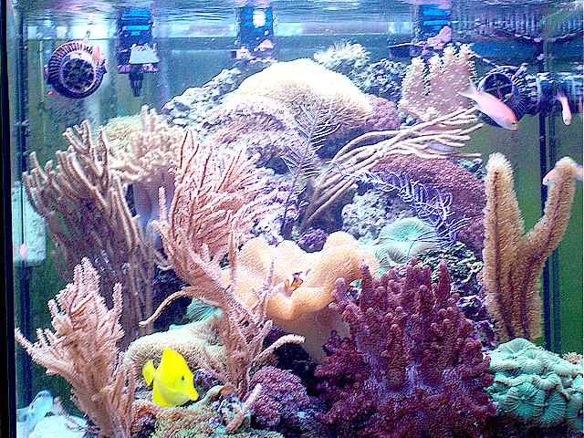 Als Bodengrund habe ich sehr feinen Argonitsand. Der Aufbau ist mit ca. 30kg toten und mit ca. 10kg lebenden Gestein gestaltet.