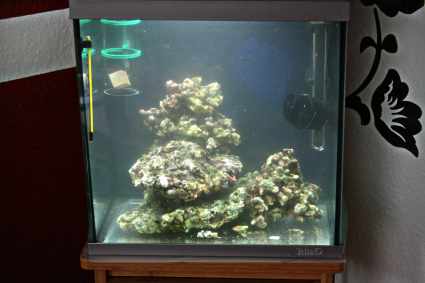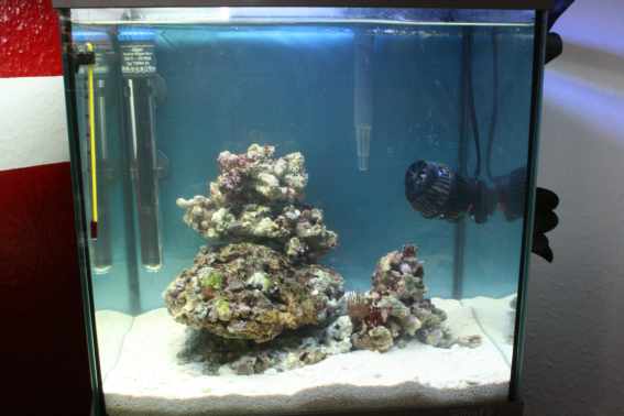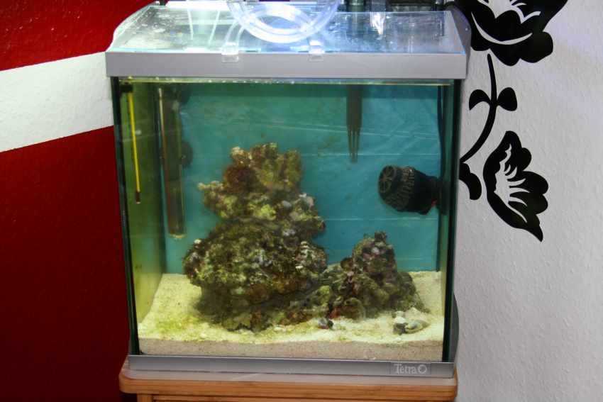 Ein Jäger Heizer 50 Watt / Thermometer und als Pumpe eine Hydor Koralia Nano (900 l/h) befinden sich derzeit im Becken.