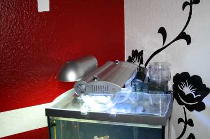 Da ich mit der Beleuchtungsmöglichkeit des Beckens nicht zufrieden bin, habe ich mir eine Aufsetzleuchte, T5 / 6 Watt mit 2 Röhren bestellt.