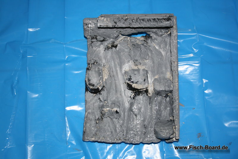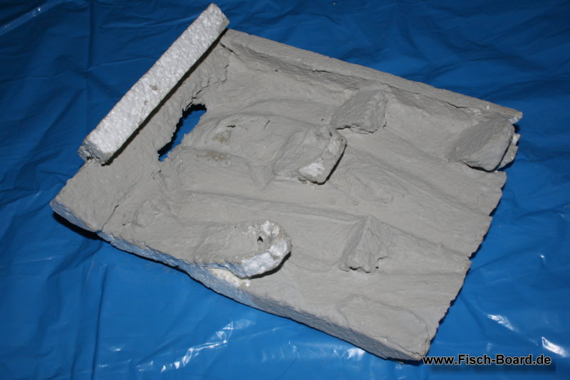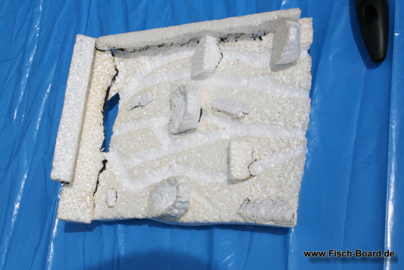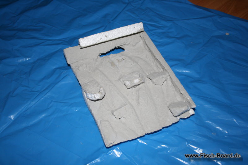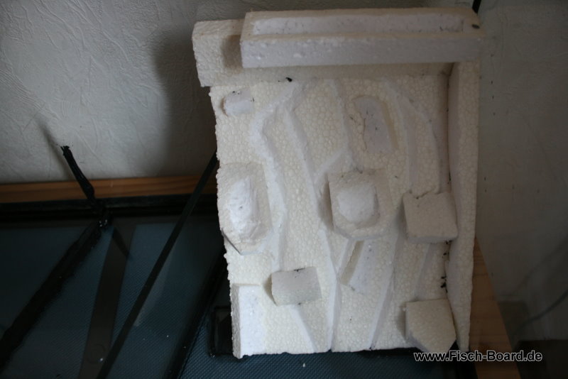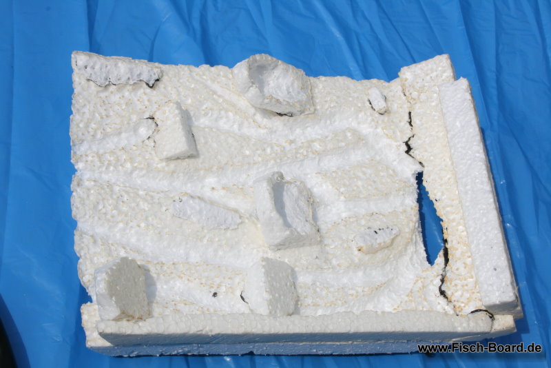 Die Styroporplatte hab ich dann noch mit einem Cuttermesser bearbeitet und kleine Stücke von Styropor aufgeklebt.