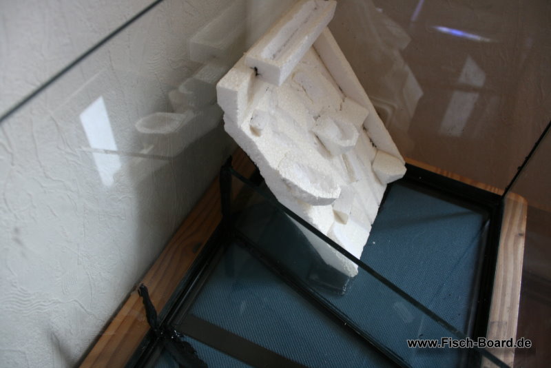 Meine Idee ist, links das Landteil, was ca. 2/3 des Beckens sein wird. Rechts kommt das Wasserteil hin. In das Wasser teil soll eine Art "Wasserfall" rein. Das wird mit Styropor und stufenweise aufgebaut. So das man evtl. Pflanzen und Moos drauf setzen kann. Vielleicht benutzen die Krabben die Stufen auch als "Dusche" :D