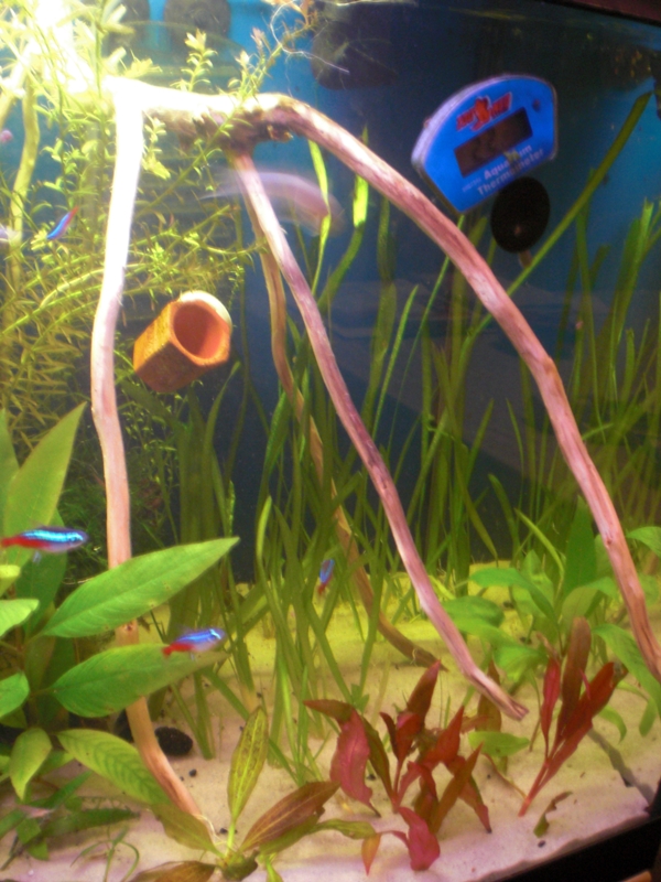 und da war mir langweilig also hab ich mir überlegt mal nen ast zu schälen, abzukochen und ins becken zu hängen.