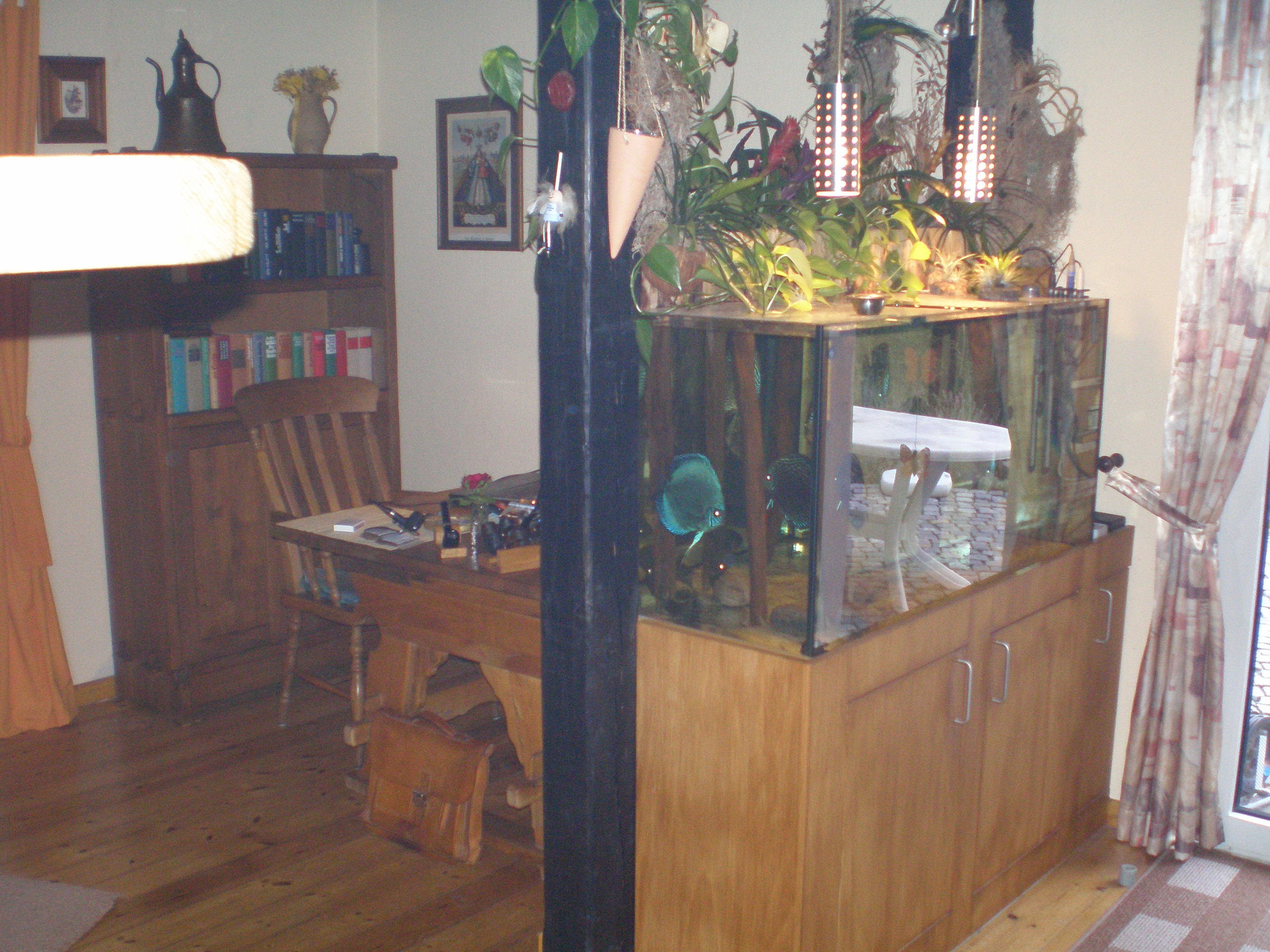 hier einige Foto´s meines Beckens. Es wird über einen Eheim 2250 und einen Eheim 2260 gefiltert, zusätzlich wird noch etwas ozonisiert. Die Wasserwerte betragen KH 1, GH 2, PH ~ 6,6, Nitrat ~ 5 mg, Nitrit n.n., Leitfähigkeit ~ 150 µS/cm bei 30 Grad.