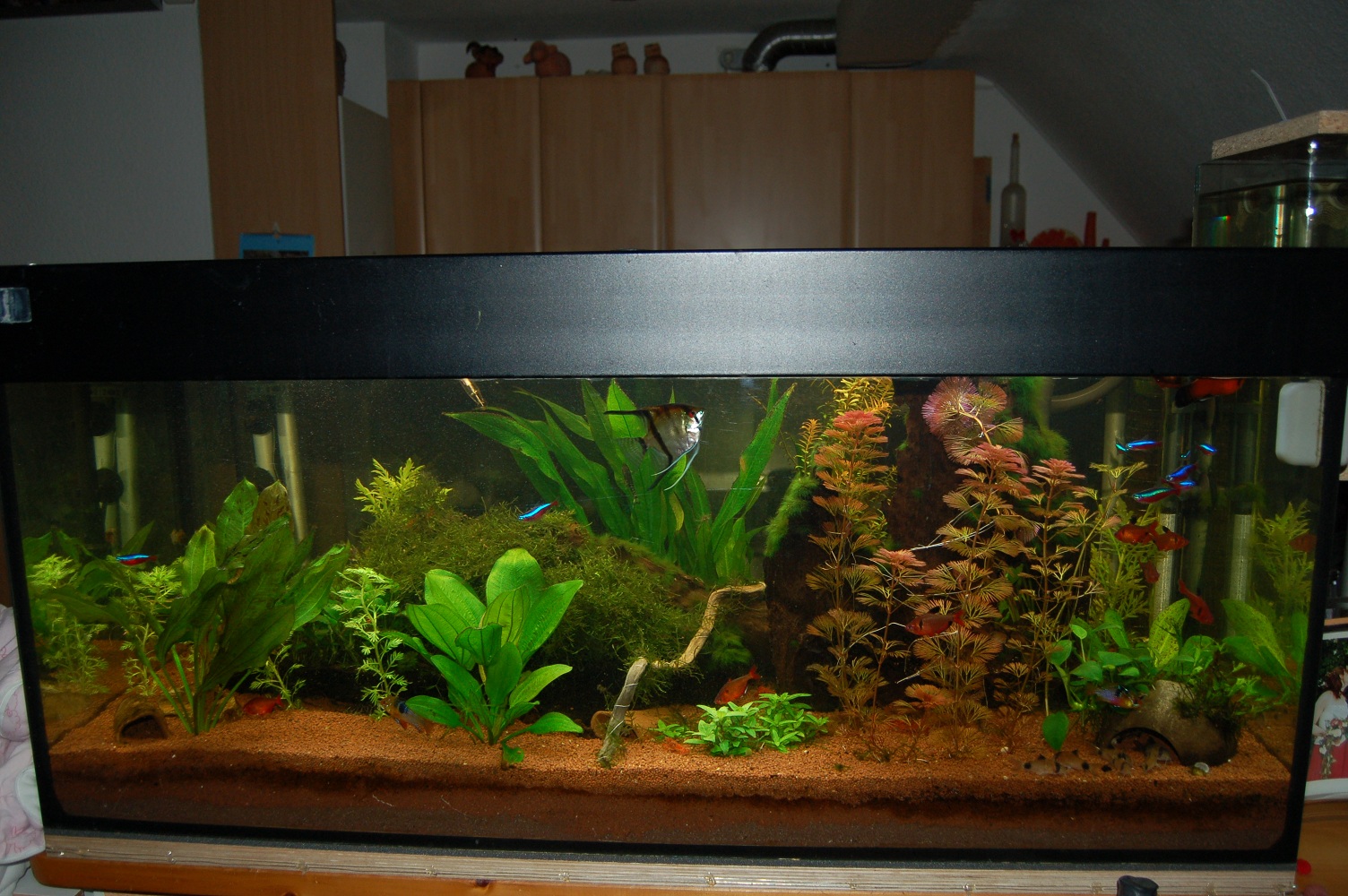 Der Skalar. Nunja, ich persönlich halte nichts davon, diese Tiere allein zu halten. Ich bevorzuge die Gruppenhaltung, zur Not auch die Paarhaltung. Die Tiere können unter guten Bedingungen recht groß werden. 23-25cm Höhe sind keine Seltenheit. Wildnahe Formen kommen auch gern Richtung 28-30cm Höhe. Meine sind gerade mal zweieinhalb Jahre alt und bereis um die 25cm gross. Bei entsprechender Größe kann so ein Tier auch einen gewissen Appetit gegenüber Deinen Neons aufbauen.