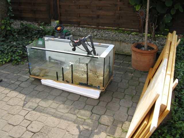 Jetzt kommt der Teil wo ich sagen muß das man genug Leute zum tragen des Beckens haben muß. Jedenfalls bei so einem großen Becken.